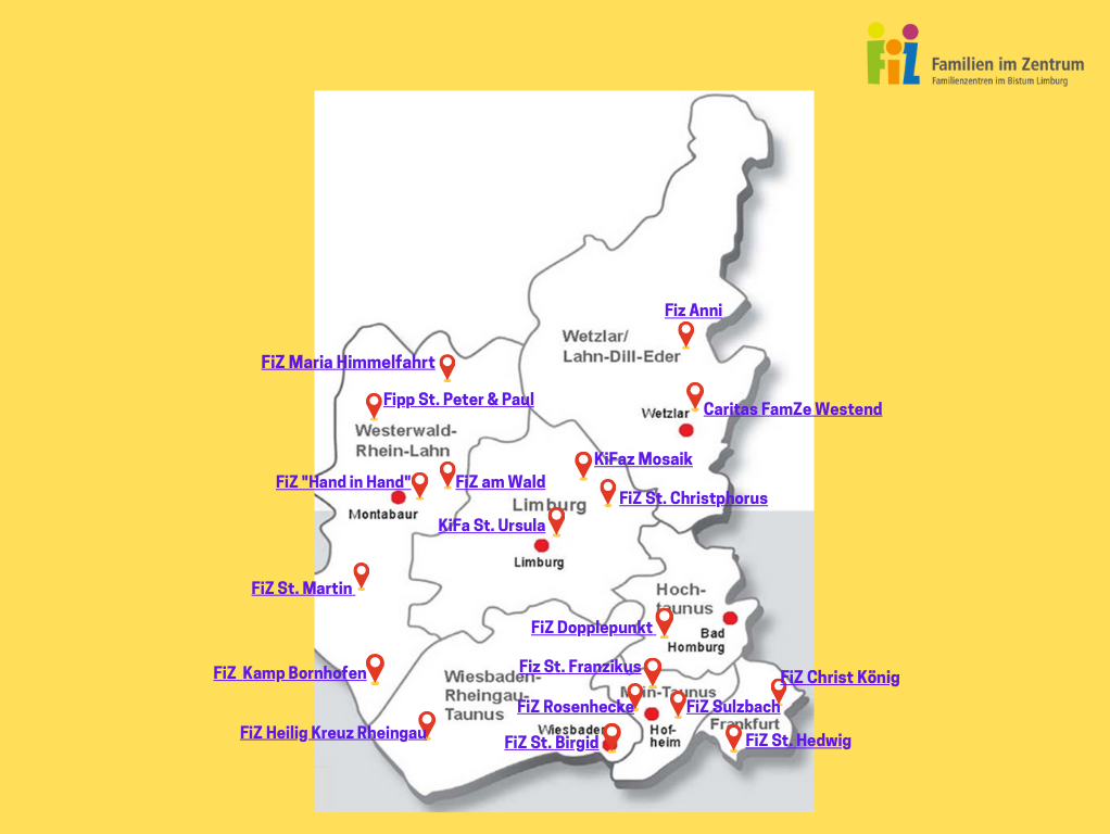 Übersichtskarte der Familienzentren im Bistum Limburg