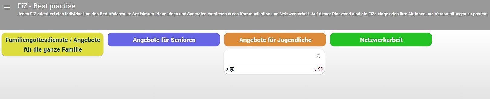 - Darüber freuen wir uns! Nähere Ideen und Anregungen können Sie aus unserem „FiZ-Anforderungskatalog" entnehmen, oder nehmen Sie doch einfach Kontakt zu Ihrer zuständigen regionalen Fachberatung auf. Die Fachberatung berät Sie gerne bei Ihrem Prozess zum Familienzentrum.