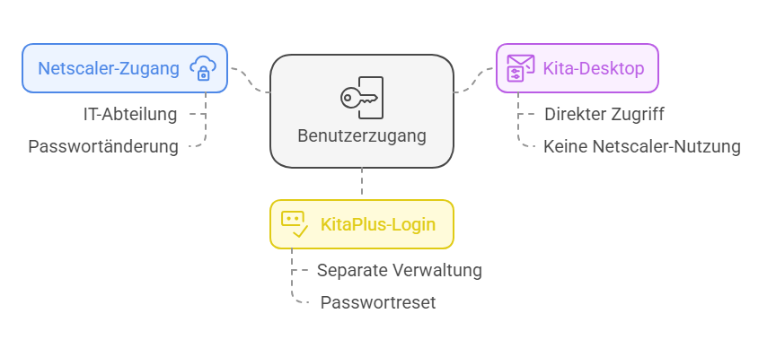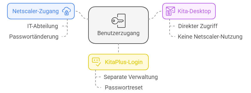 - Passwörter für Netscaler und KitaPlus werden von unterschiedlichen Stellen verwaltet.