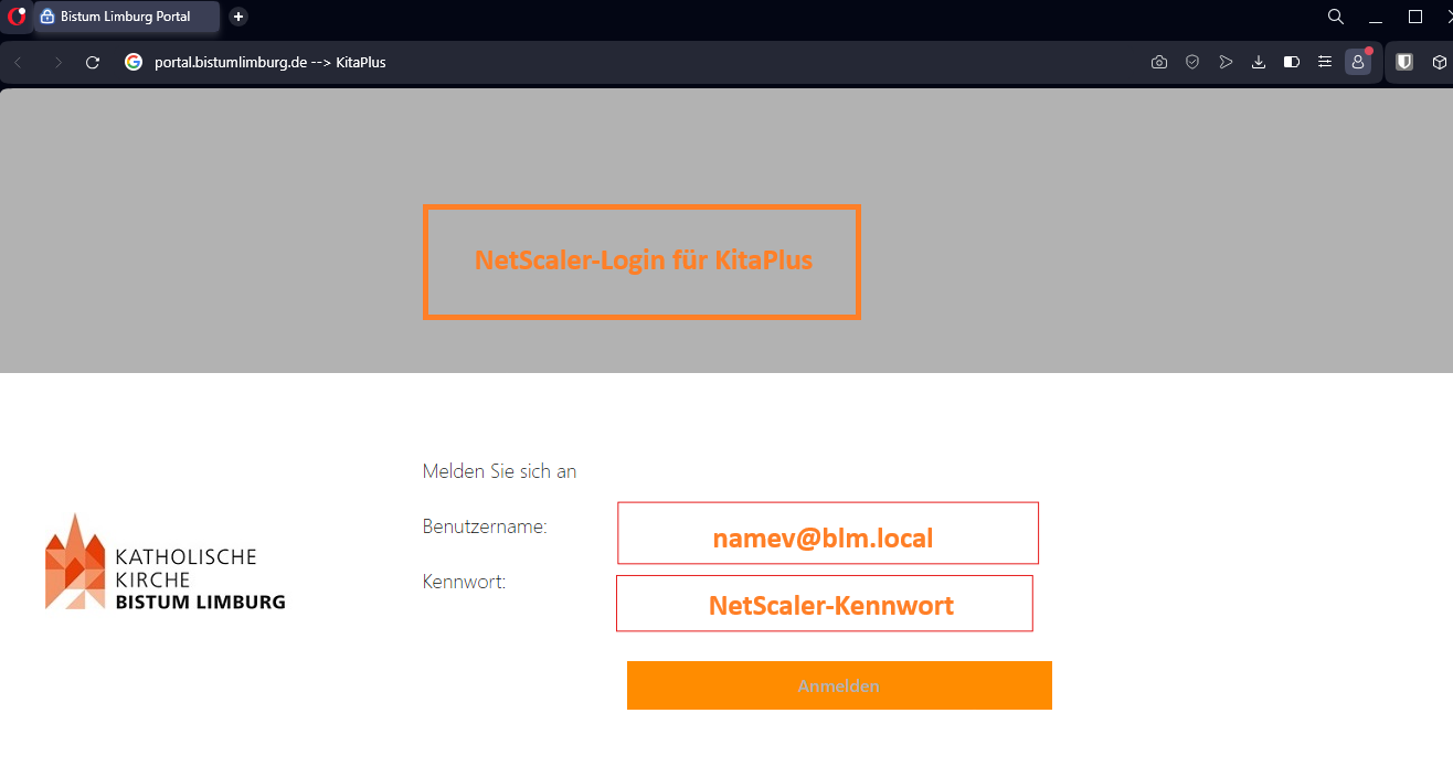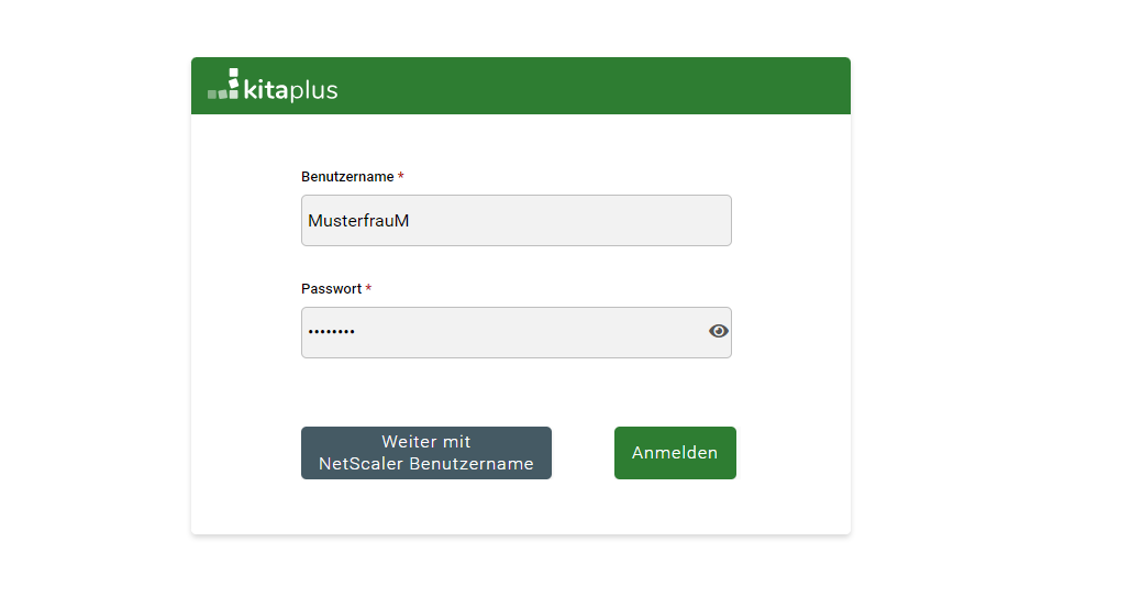 - Netscaler und KitaPlus-Login sind zwei getrennte Zugangsdaten.