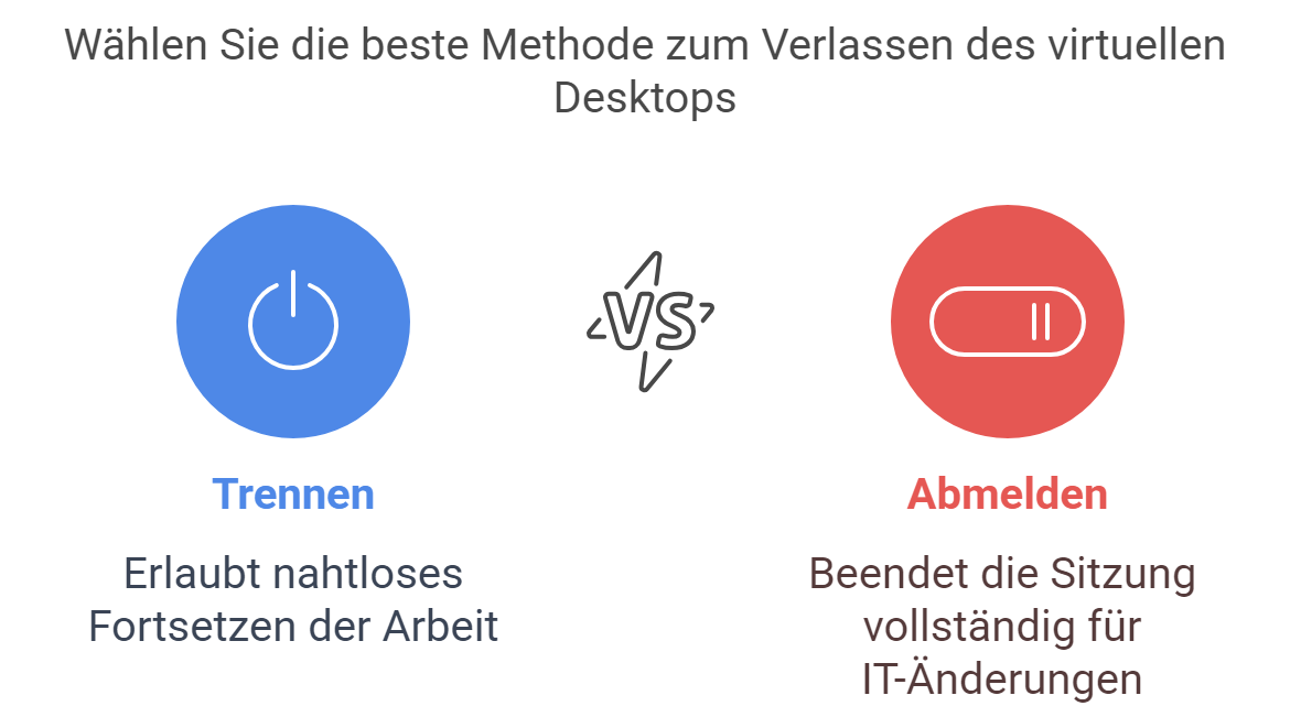 Auf dem Desktop befindet sich ein roter Button mit der Beschriftung "Sitzung Abmelden" zum schnellen Beenden der Verbindung.